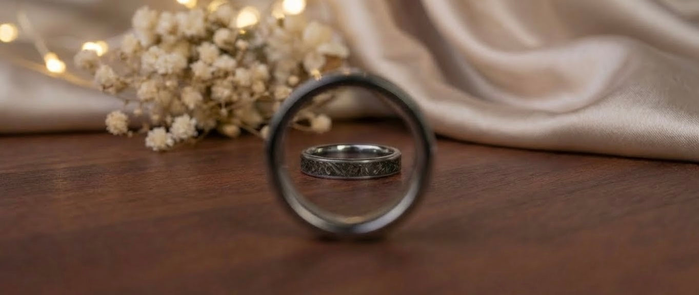 Real Meteorite Titanium Carbide Engagement Ring, Bespoke Wedding Band