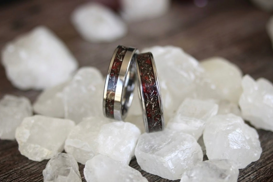 Real Meteorite His & Hers Ring Set, Titanium Wedding Bands