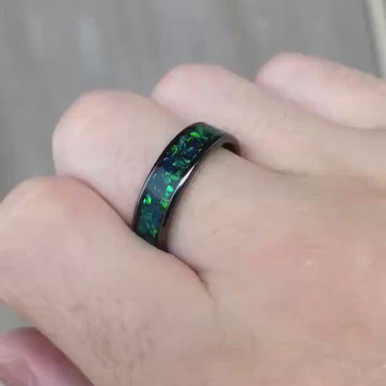 Green Opal Ceramic Engagement Ring, Handmade Wedding Band
