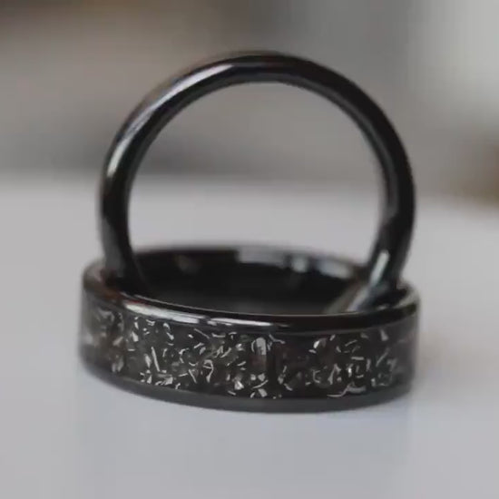 Elevate your love story with our Meteorite and Titanium Couple Ring Set — a fusion of timeless design, cosmic beauty, and artisan precision. Each handcrafted wedding band is a reflection of your individuality and the strength of your bond.